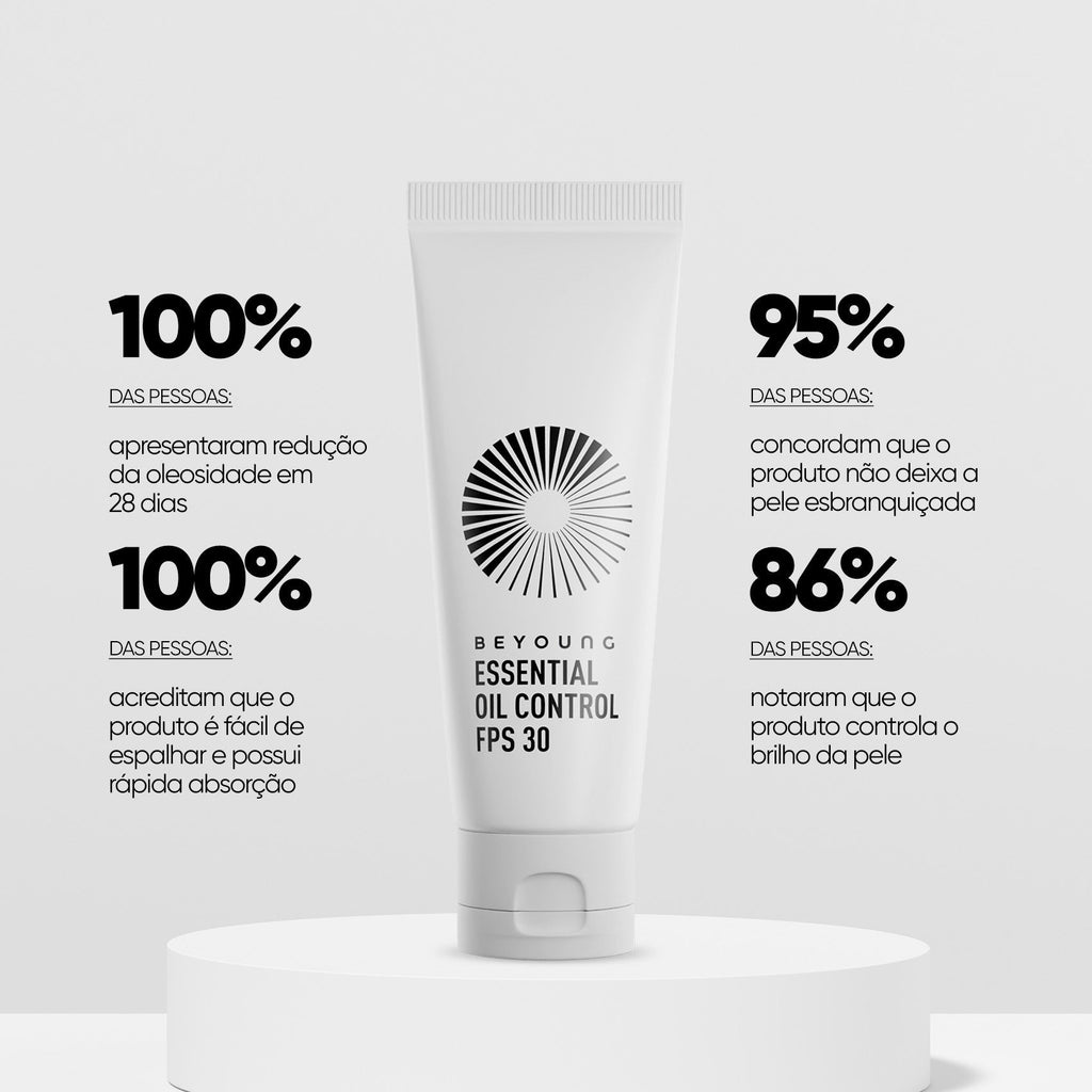 Essential Oil Control FPS 30 é um protetor solar desenvolvido para peles mistas, oleosas e acneicas. Com efeito matte e toque seco, ajuda a controlar a oleosidade, reduzir o brilho e minimizar a aparência dos poros, além de oferecer ação antioxidante para proteger contra os danos causados por radicais livres.