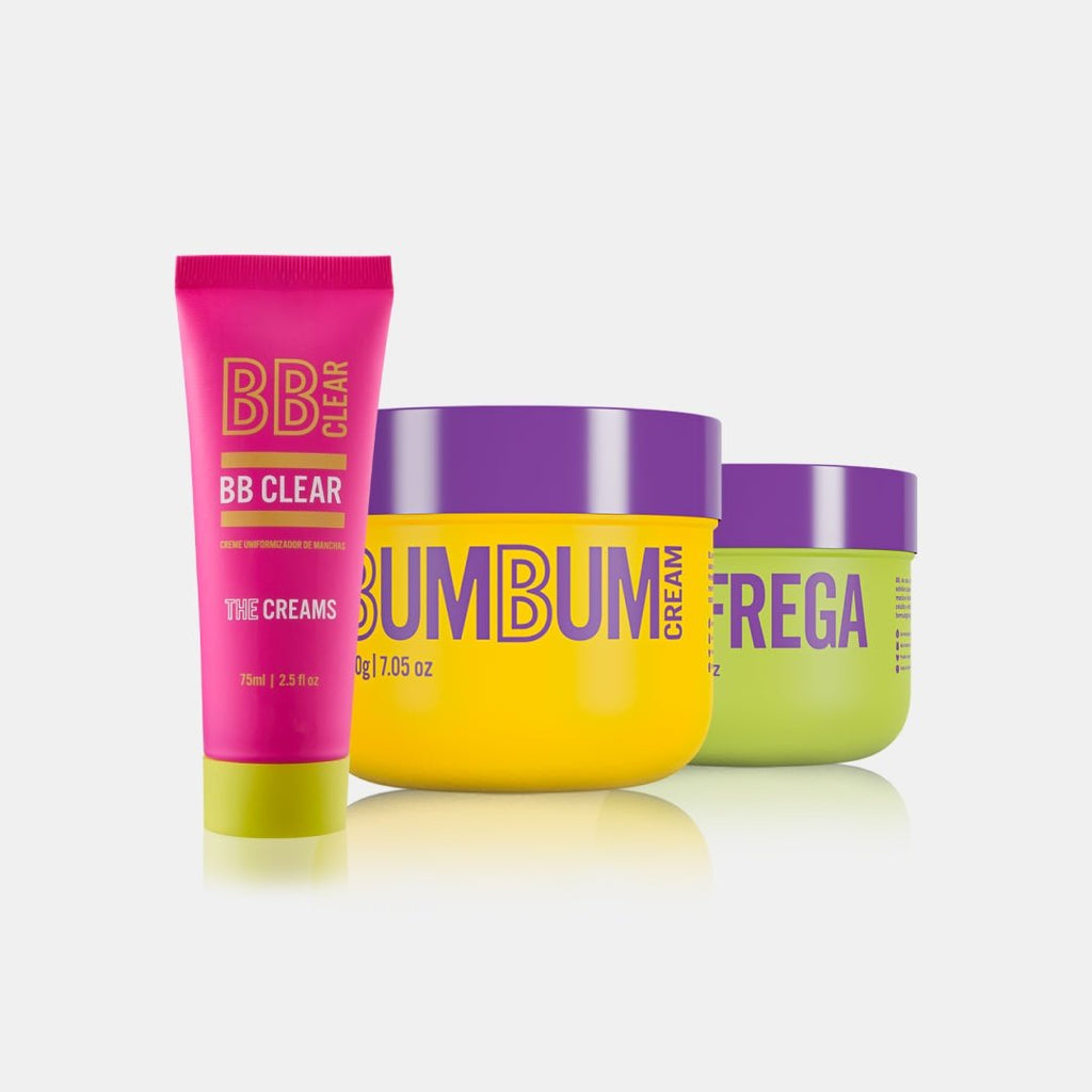 Se você quer uma pele uniforme, lisinha e hidratada, esse kit é a escolha certa. A combinação do BB Clear, Esfrega e Bumbum Cream ajuda a suavizar a textura da pele, reduzir a aparência das marquinhas deixadas pelos pelinhos encravados e garantir hidratação e firmeza todos os dias.