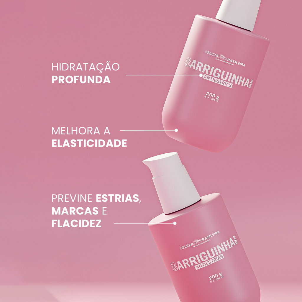O Barriguinha Cream Antiestrias foi criado para hidratar profundamente e melhorar a elasticidade da pele, prevenindo o aparecimento de estrias e deixando a textura mais macia e suave.